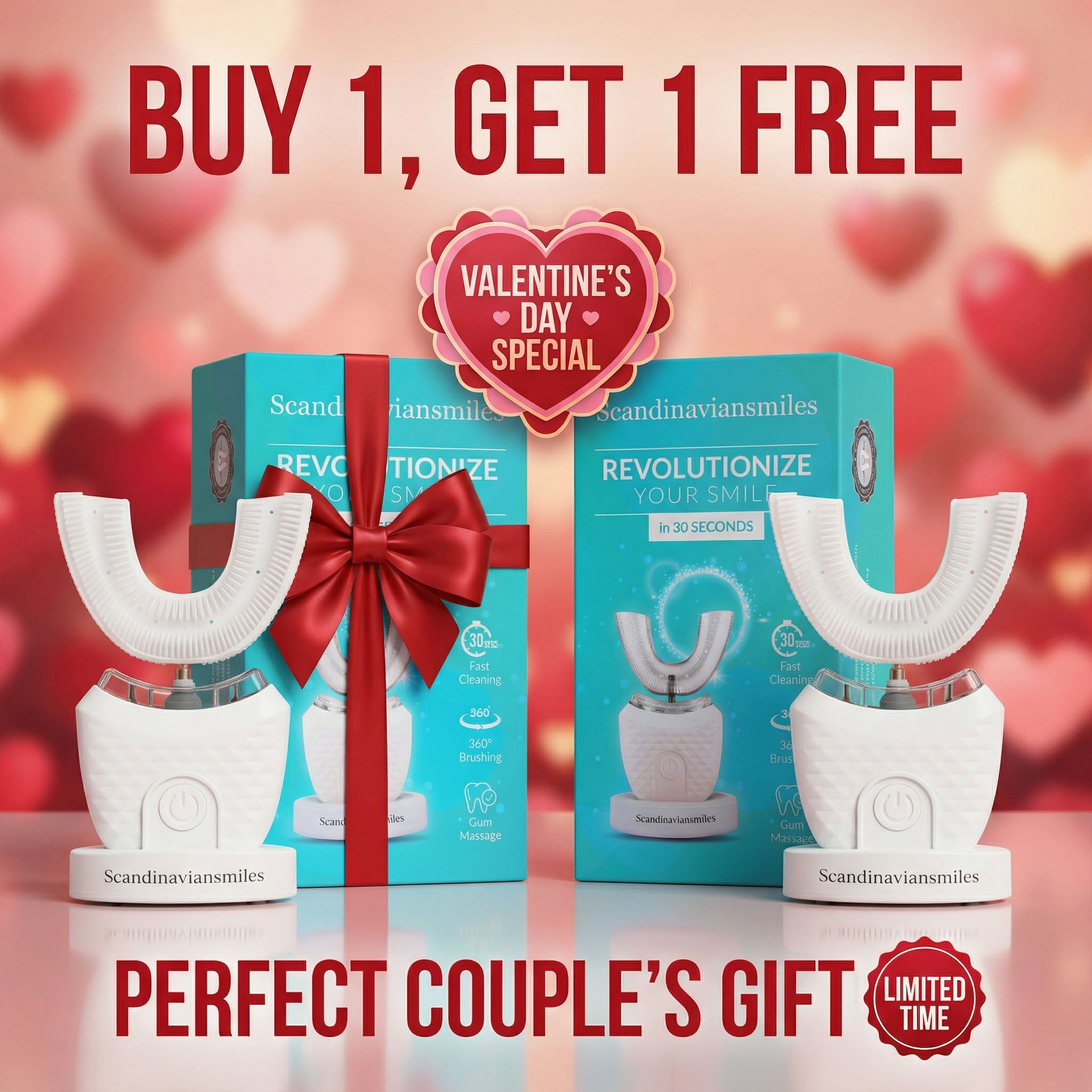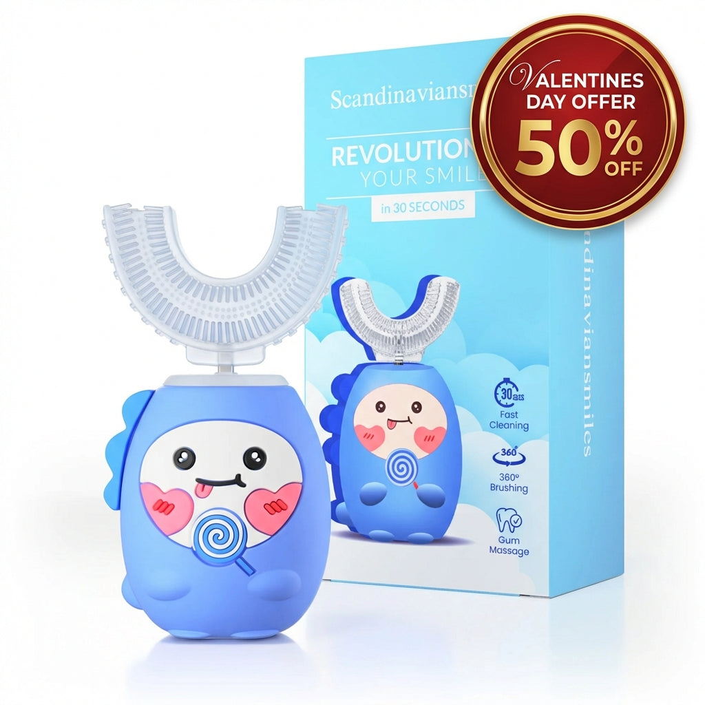 Our Scandinavian Smiles brush is a fully automatic, 30-second solution that deep-cleans every tooth, whitens gently with cold light, and promotes gum health — giving you a cleaner, fresher smile with zero effort.